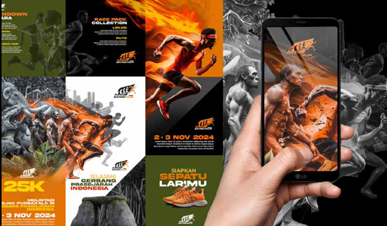 Gantha Studio dan Mahami Graphic studio dipercaya oleh Skylight Indonesia sebagai event organizer untuk menangani visual branding event SANGIRUN dengan mengangkat tema “Historic but Dynamic” sebuah semangat merawat sejarah sekaligus menghadirkan energi baru. Visualisasi memadukan ikon sejarah purba Indonesia dengan elemen olahraga lari, digarap dengan gaya hyper realistic dan cinematic untuk memberi kesan prestigious dan berkelas.